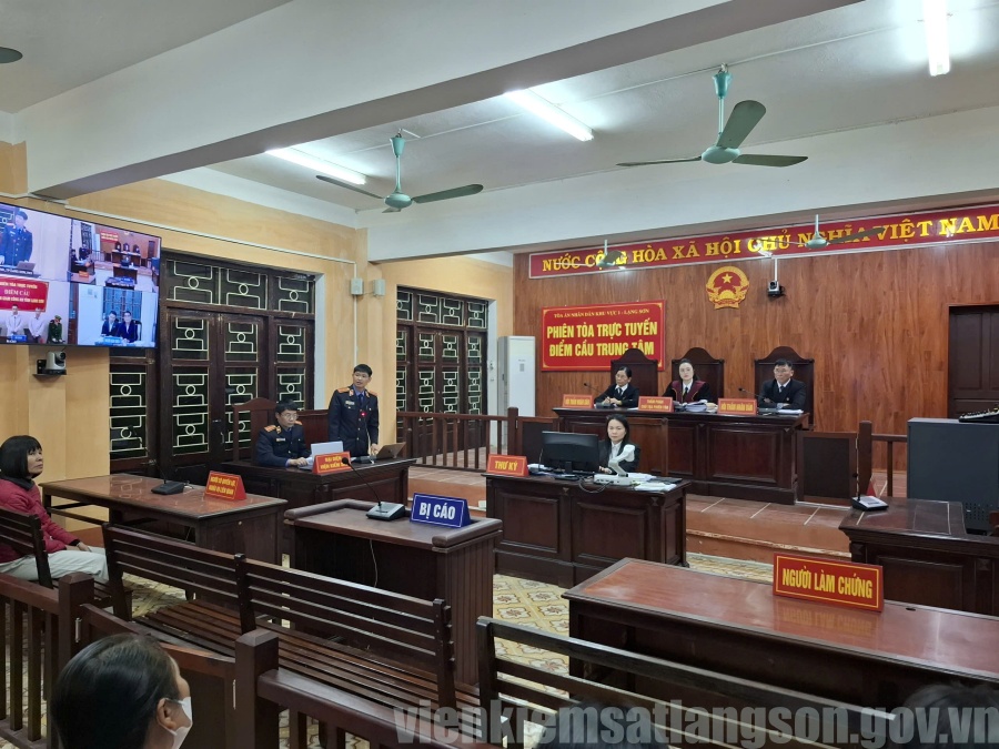 Kiểm sát viên VKSND khu vực 1 - Lạng Sơn công bố cáo trạng tại phiên tòa trực tuyến rút kinh nghiệm